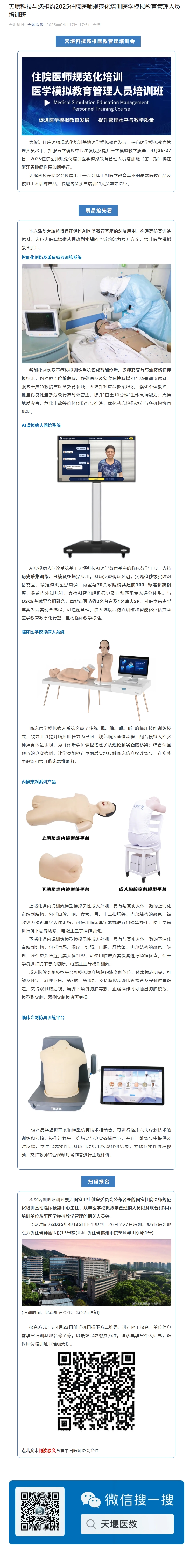 天堰科技与您相约2025住院医师规范化培训医学模拟教育管理人员培训班